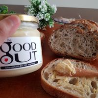I thought I’d given up on butter, then I tried the vegan butter from Jakarta brand “The Good Gut” (who also make my favourite coconut yoghurt). Their butter is made with cashew and pumpkin, which was a surprise ingredient, but the result is a really delicious, slightly sweet tasting spread. The texture is more grainy than dairy butter, and a bit harder to spread, but the taste is great, and most importantly it goes great with Vegemite!