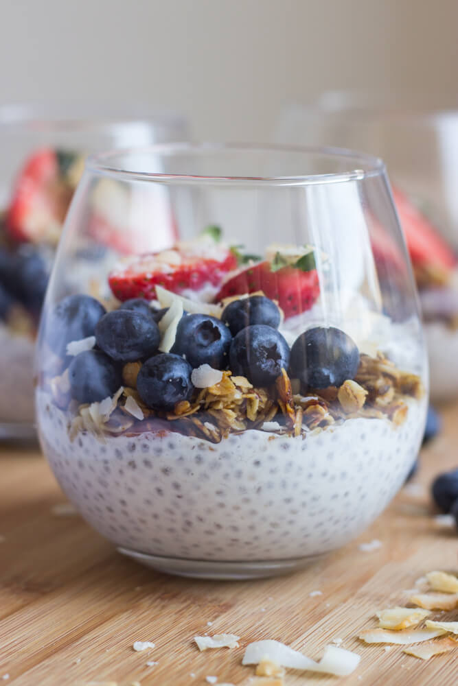 #12. Chia Bowl. This is a trendy breakfast to impress your friends with. Add 2-3 tablespoons of chia seeds to 1/2 to 2/3 cup of plant-based milk in a glass or a bowl and leave it to sit for at least 15 minutes, or even better overnight in the fridge. The chia seeds will swell up, absorbing the milk and setting to make a pudding. Chia seeds are high in Omega3 and protein, as well as containing calcium, manganese, magnesium and phosphorus. To serve the chia bowl, remove from the fridge and top it off with your choice any or all of these suggestions: a spoon of granola, berries, banana or any chopped fruit, coconut flakes, and maple syrup. Really delicious and super healthy.