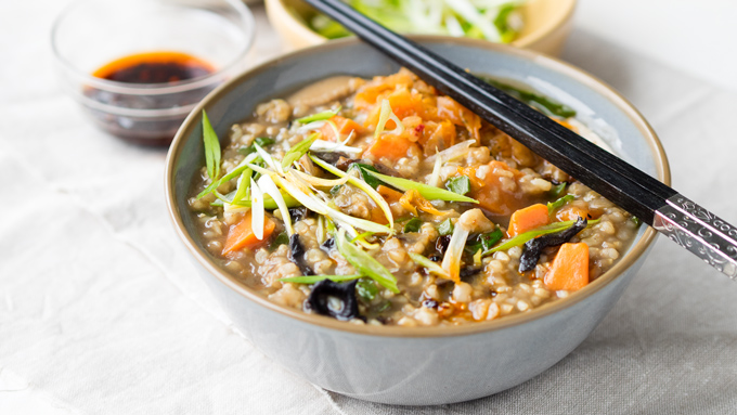 #17. Congee (South East Asia and China). Congee, or Burbur in Indonesia and Malaysia, is basically a sticky rice porridge. Different regions of South East Asia all have their own versions, and of course, they all usually contain chicken or fish, but the vegan versions are just as good. Vietnamese congee is often flavoured with ginger, Indonesian Burbur Manado uses lemongrass, Cambodian congee uses coriander. Congee can be quite a thin soupy porridge in some regions, but can also be very thick and sticky. Check out these recipe links for some ideas to get you going.